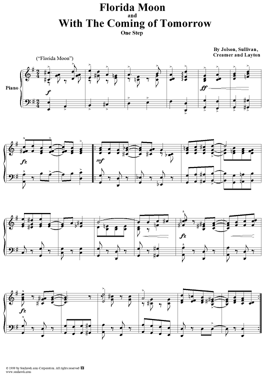 Digital Sheet Music for Florida Moon/With the Coming of Tomorrow (One Step) by Al Jolson scored for Piano/Vocal; id:265933