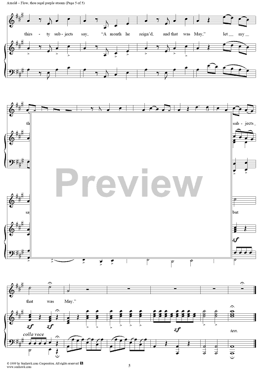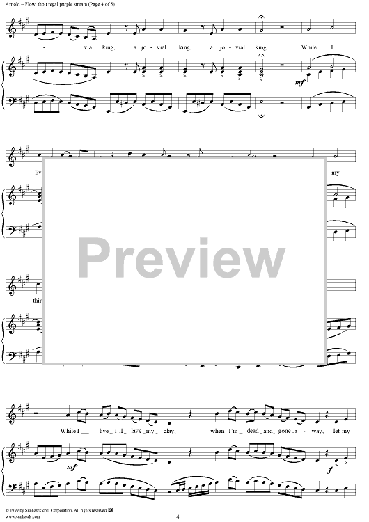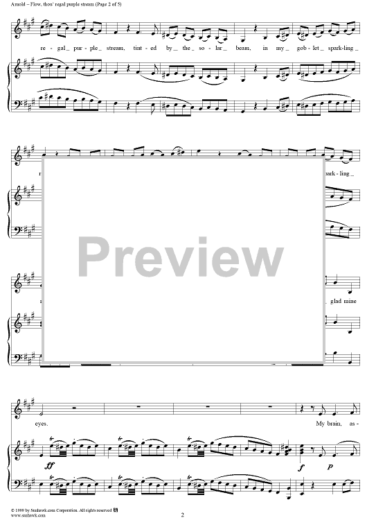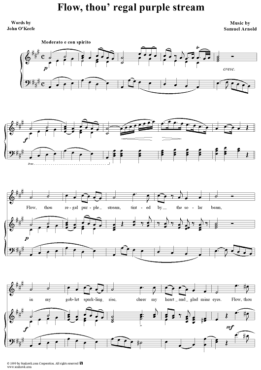Digital Sheet Music for Flow, thou' regal purple stream by Samuel Arnold, John o'Keefe scored for Voice/Piano; id:270385