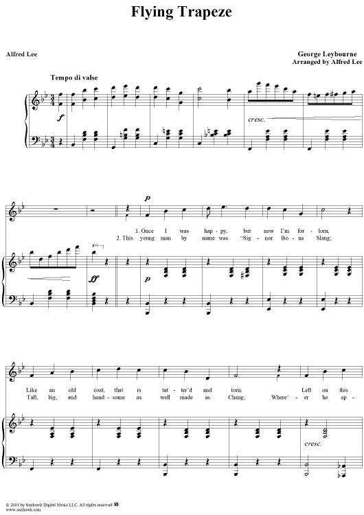Digital Sheet Music for Flying Trapeze by Joe Sanders, Alfred Lee scored for Piano/Vocal; id:260193