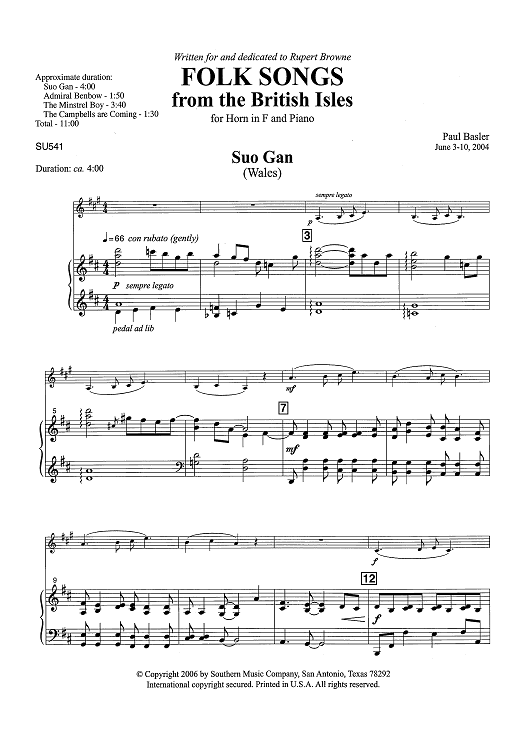 "Folk Songs From the British Isles - Piano" Sheet Music by Paul Basler