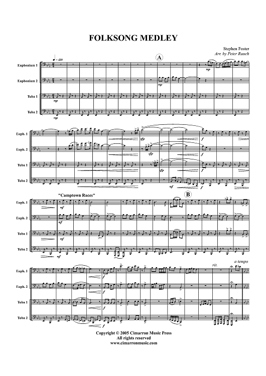 Digital Sheet Music for Folksong Medley - Score by Peter Rauch, Stephen Foster scored for Tuba Quartet; id:319943