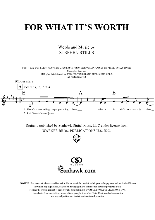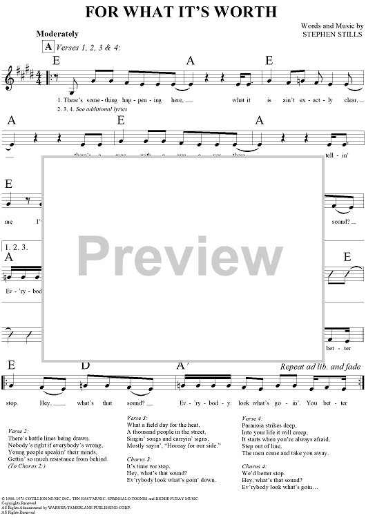 Digital Sheet Music for For What It's Worth by Buffalo Springfield, Stephen Stills scored for Lead Sheet; id:293918