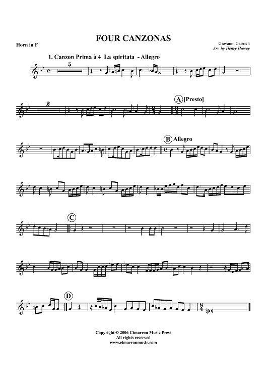 "Four Canzonas - Horn in F" Sheet Music by Giovanni Gabrieli