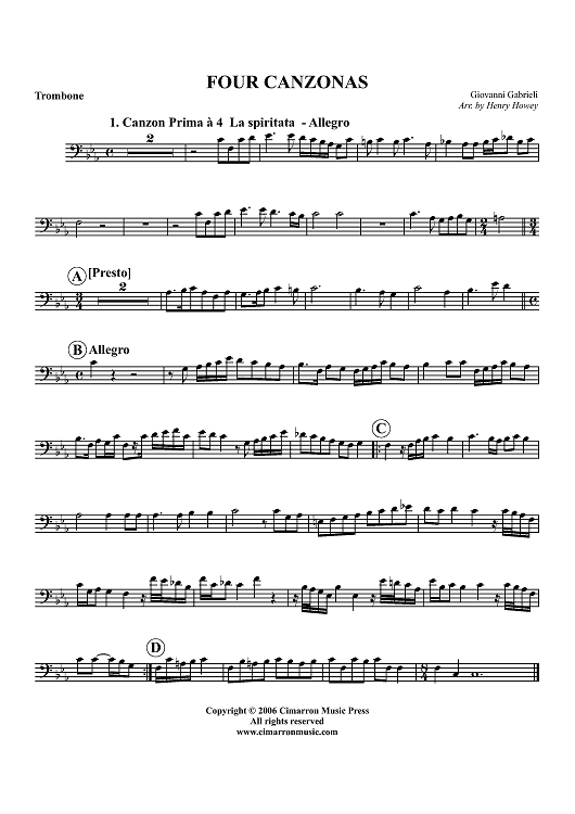 "Four Canzonas - Trombone" Sheet Music by Giovanni Gabrieli