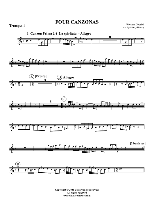 "Four Canzonas - Trumpet 1" Sheet Music by Giovanni Gabrieli