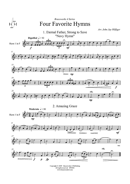 Digital Sheet Music for Four Favorite Hymns - Horn 1 in F by Various, John Jay Hilfiger scored for Horn Trio; id:410664