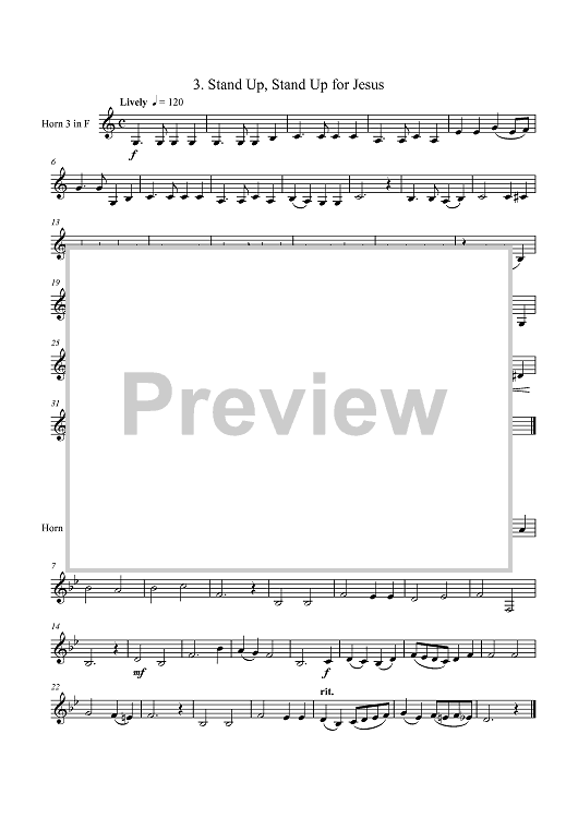 Digital Sheet Music for Four Favorite Hymns - Horn 3 in F by Various, John Jay Hilfiger scored for Horn Trio; id:410666