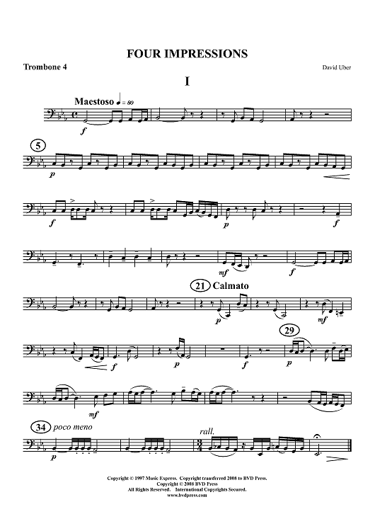 "Four Impressions (Suite) - Trombone 4" Sheet Music by David Uber