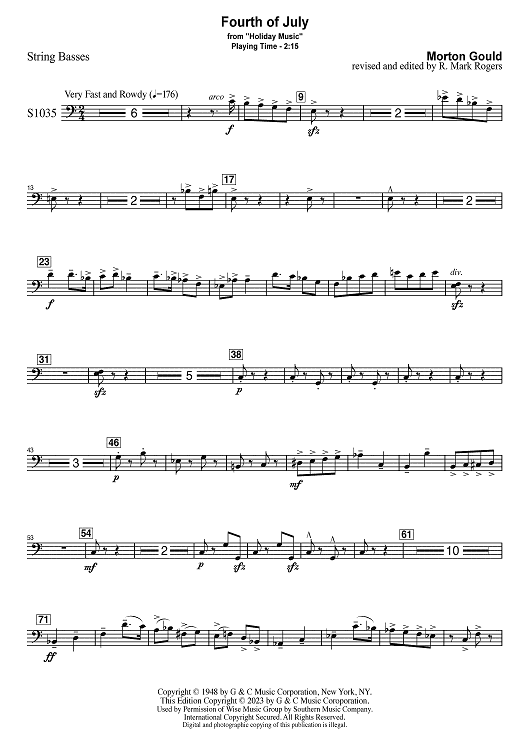 "Fourth of July - String Bass" Sheet Music by Morton Gould