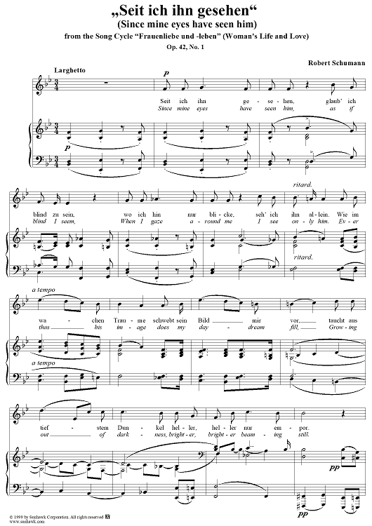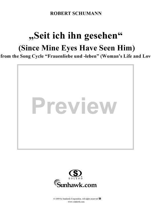 Digital Sheet Music for Frauenliebe und -leben, no. 1: Seit ich ihn gesehen by Robert Schumann scored for Voice/Piano; id:119345