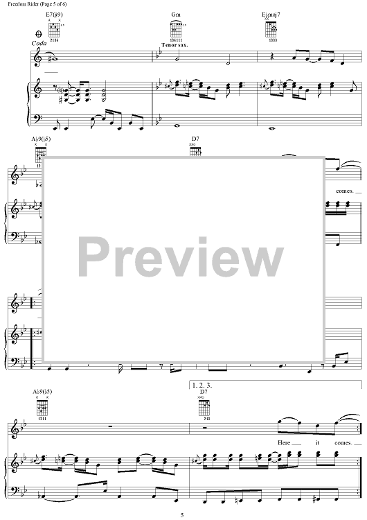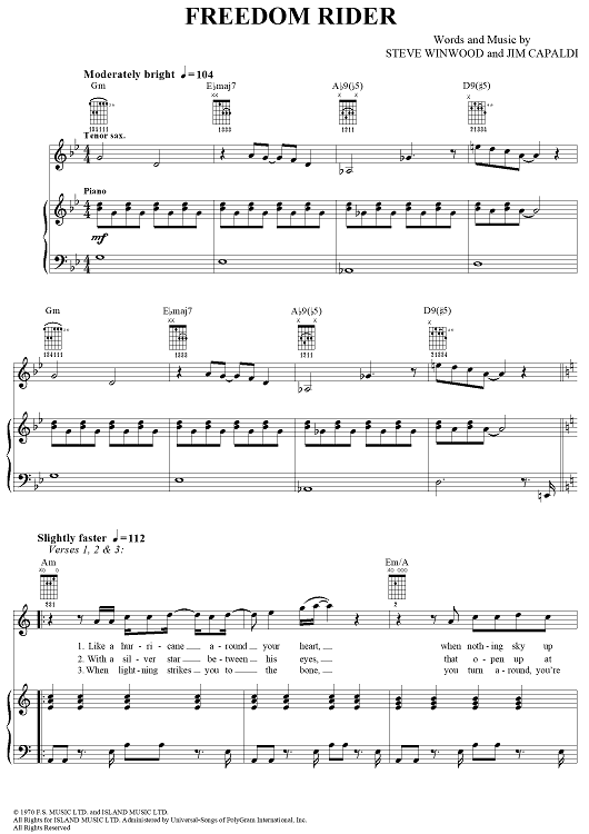 Digital Sheet Music for Freedom Rider by Steve Winwood, Jim Capaldi scored for Piano/Vocal/Chords; id:233234