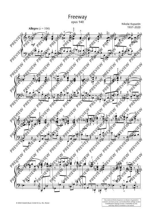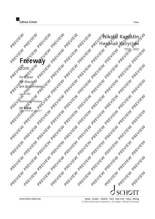 Freeway is a light-hearted and virtuoso piano piece with jazz harmonies by Kapustin, now being published for the first time.