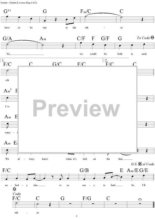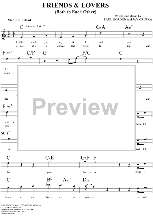 Digital Sheet Music for Friends and Lovers (Both to Each Other) by Juice Newton, Paul Gordon, Jay Gruska, Eddie Rabbitt scored for Lead Sheet; id:269854
