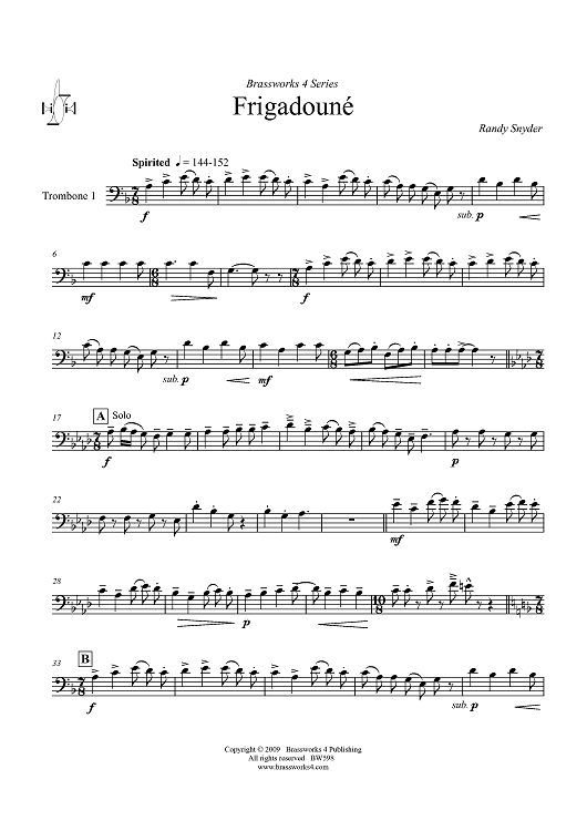 Digital Sheet Music for Frigadouné - Trombone 1 by Randy Snyder scored for Brass Quartet; id:410620