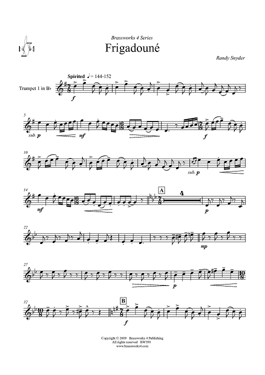 Digital Sheet Music for Frigadouné - Trumpet 1 in B-flat by Randy Snyder scored for Brass Quartet; id:410618