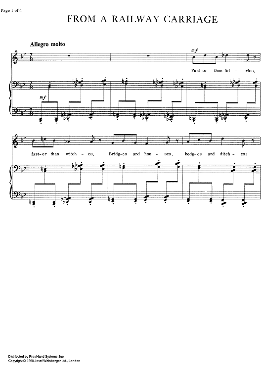 Digital Sheet Music for From A Railway Carriage by Malcolm Williamson scored for Soprano or Tenor/Piano; id:332962