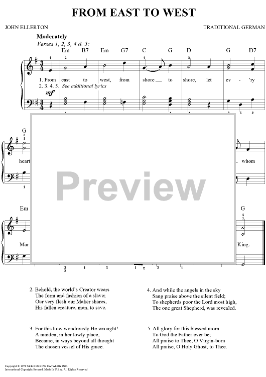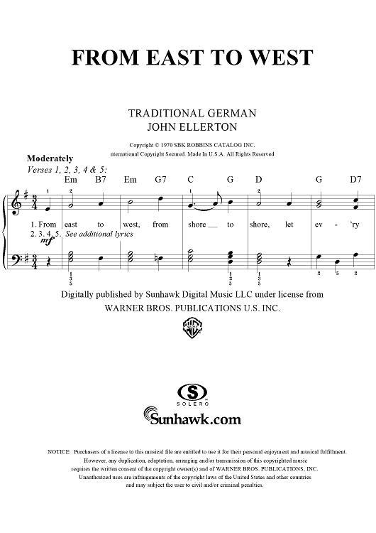 Digital Sheet Music for From East to West by John Ellerton, Traditional scored for Easy Piano/Vocal; id:260952