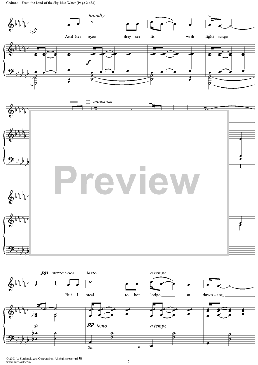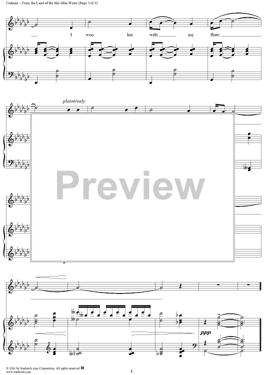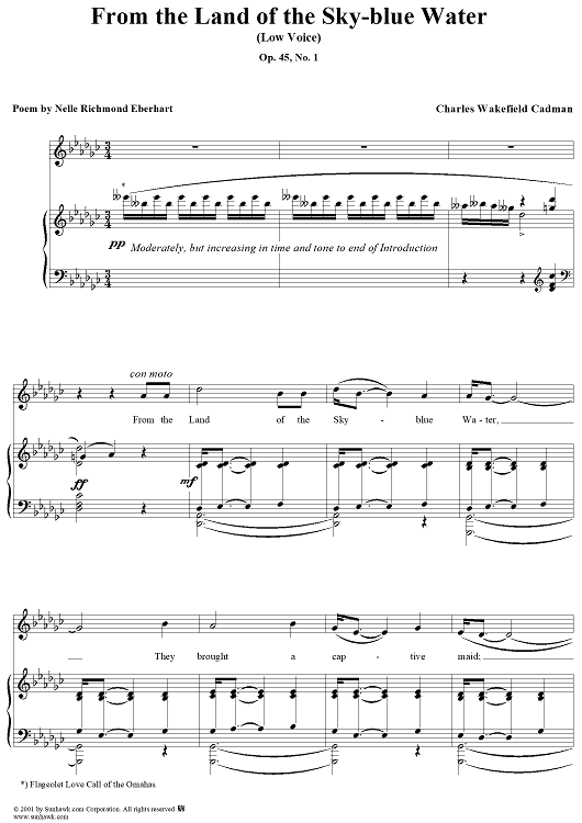 Digital Sheet Music for From the Land of the Sky-Blue Water - Low Voice by Charles Wakefield Cadman, Nelle Richmond Eberhart scored for Piano/Vocal; id:262307