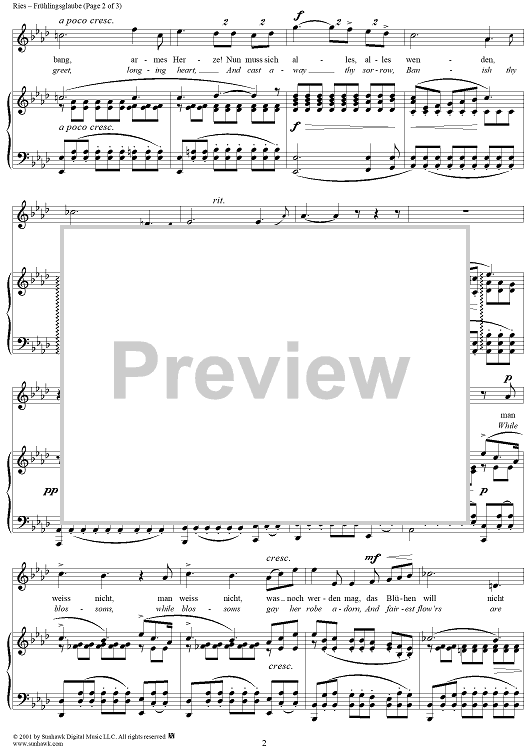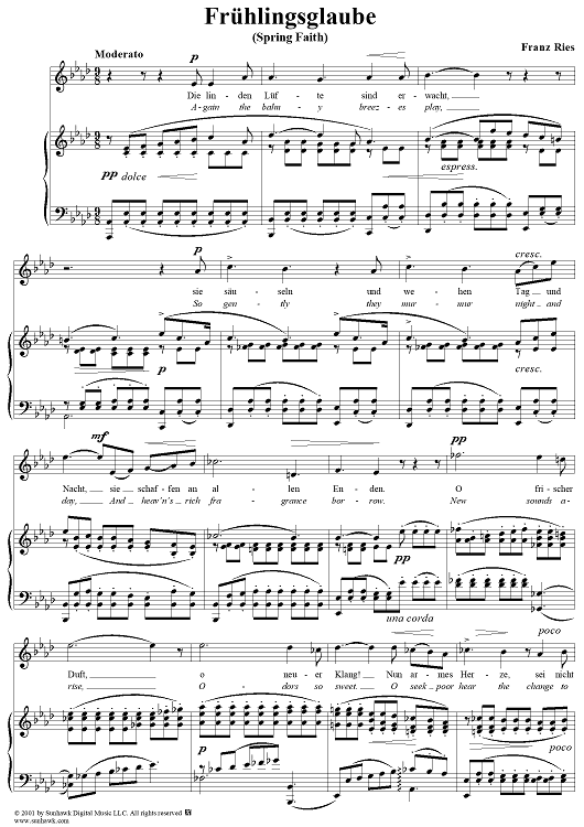 Digital Sheet Music for Frühlingsglaube (Spring Faith) by Franz Ries scored for Voice/Piano; id:255616