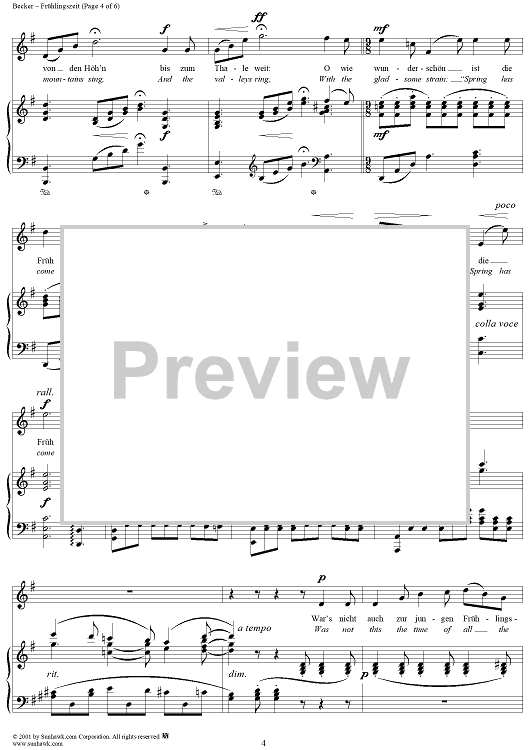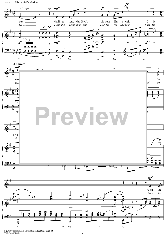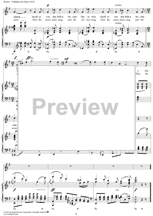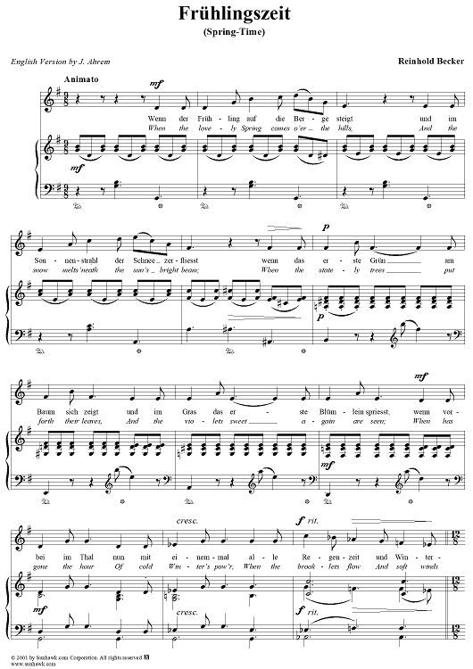 Digital Sheet Music for Frühlingzeit (Spring-Time) by Reinhold Becker, Jacques Ahrem scored for Voice/Piano; id:275765