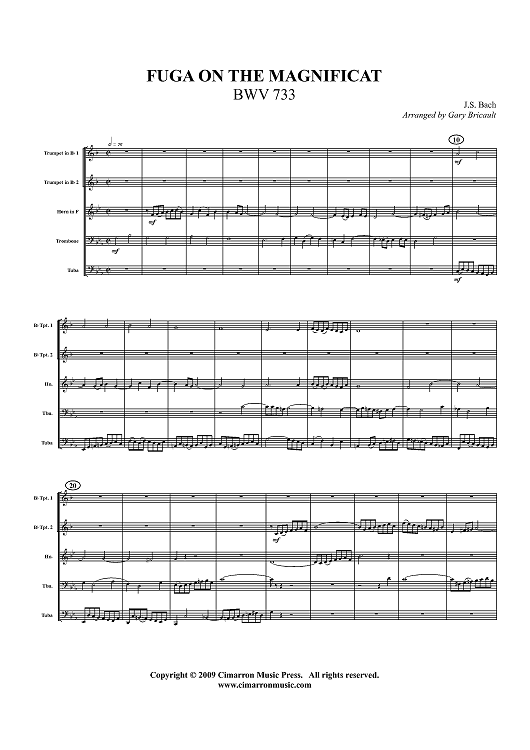 Digital Sheet Music for Fuga on the Magnificat, BWV 733 - Score by Johann Sebastian Bach, Gary Bricault scored for Brass Quintet; id:416301