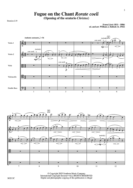 Digital Sheet Music for Fugue on the Chant Rorate coeli - Full Score by Franz Liszt, William Bullock scored for String Orchestra; id:507818
