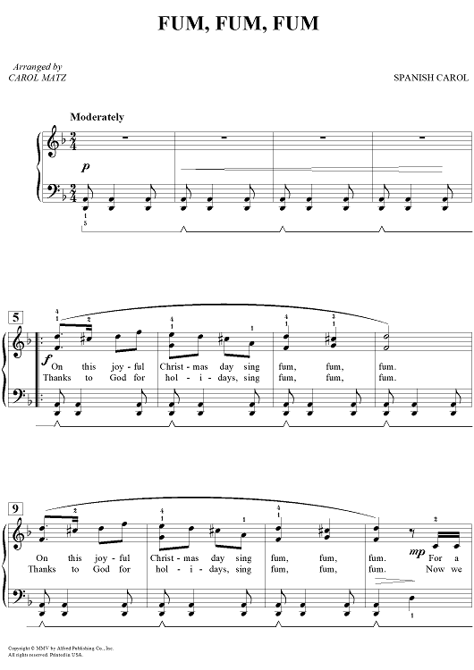 Digital Sheet Music for Fum, Fum, Fum by Carol Matz, Spanish carol scored for Piano; id:453949