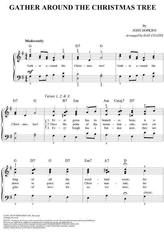 Digital Sheet Music for Gather Around the Christmas Tree by Dan Coates, John Henry Hopkins, Jr. scored for Easy Piano/Vocal; id:266847