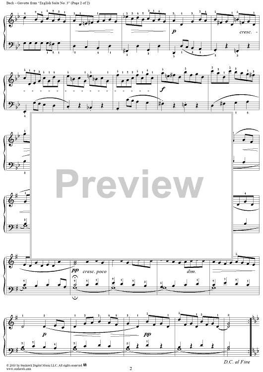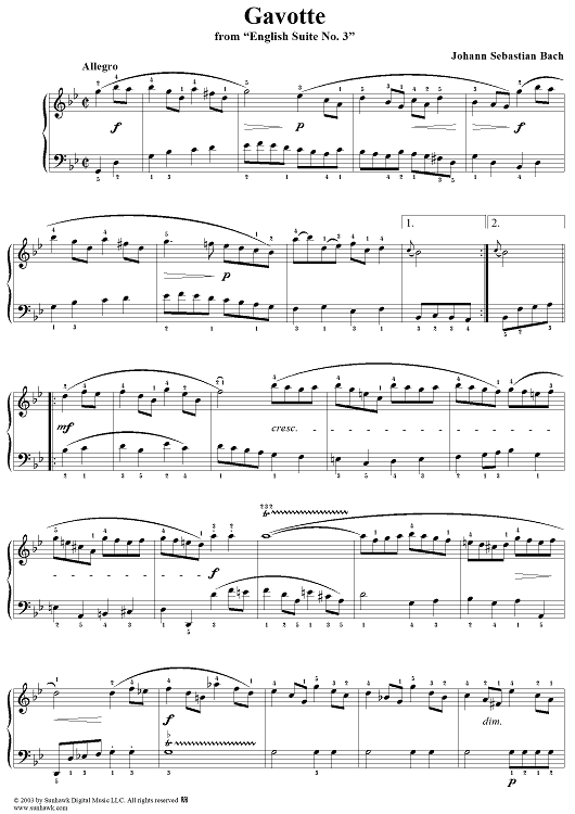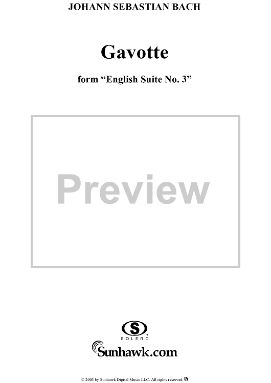"Gavotte from the Third English Suite in G Minor" Sheet Music by Johann Sebastian Bach