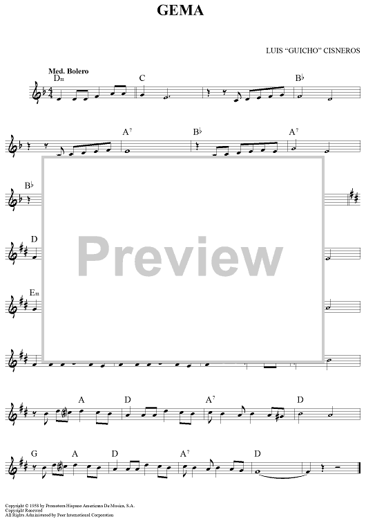 Digital Sheet Music for Gema by Luis "Guicho" Cisneros scored for Lead Sheet; id:449000