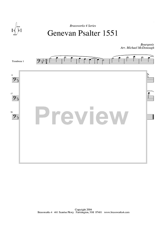 Digital Sheet Music for Genevan Psalter 1551 - Trombone 1 by Louis Bourgeois, Michael McDonough scored for Trombone Quartet; id:317730
