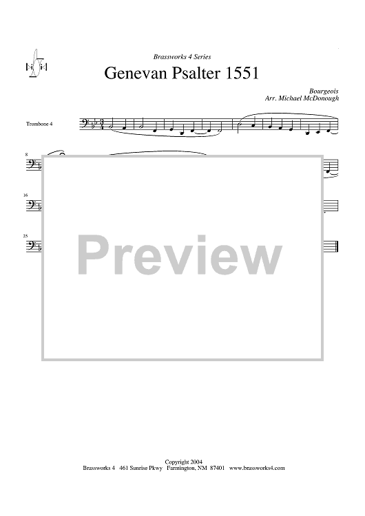 Digital Sheet Music for Genevan Psalter 1551 - Trombone 4 by Louis Bourgeois, Michael McDonough scored for Trombone Quartet; id:317733