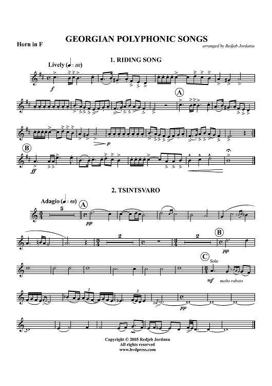 "Georgian Polyphonic Songs - Horn in F" Sheet Music by Various