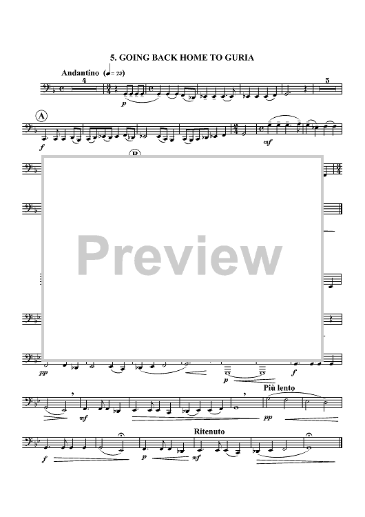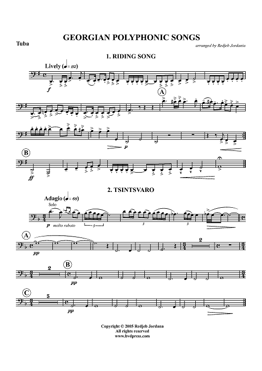 Digital Sheet Music for Georgian Polyphonic Songs - Tuba by Various, Redjeb Jordania scored for Brass Quintet; id:428075