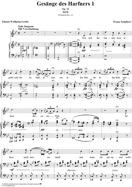 Digital Sheet Music for Gesänge des Harfners I, Op.12 No.1, D478 by Franz Schubert scored for Voice/Piano; id:256607