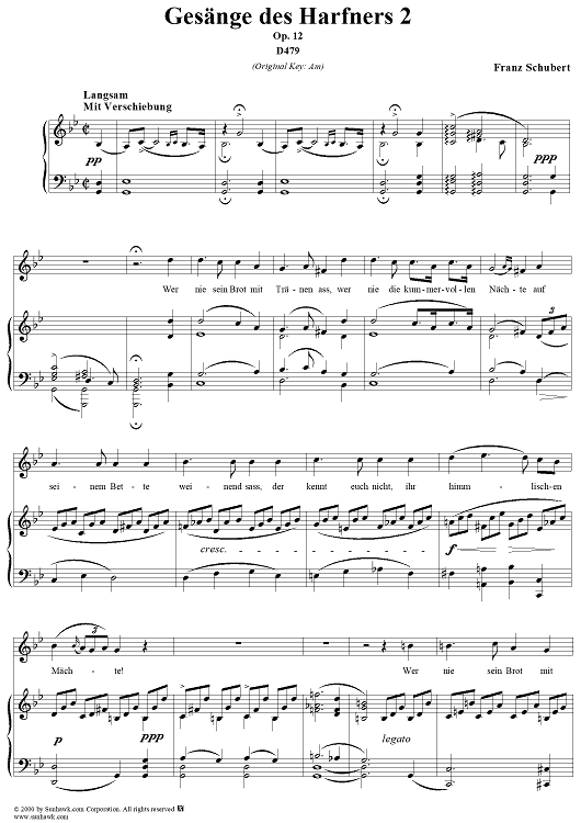 Digital Sheet Music for Gesänge des Harfners II, Op.12 No.2, D479 by Franz Schubert scored for Voice/Piano; id:256620