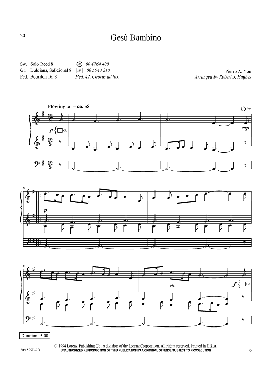 Digital Sheet Music for Gesù Bambino by Pietro A. Yon, Robert J. Hughes scored for Organ Solo; id:437830
