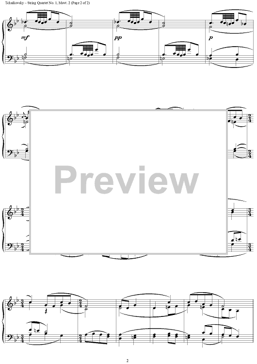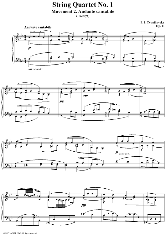 Digital Sheet Music for Get to Know Tchaikovsky. String Quartet No. 1. Movement 2. (Excerpt) by Peter Ilyich Tchaikovsky scored for Piano Solo; id:366599