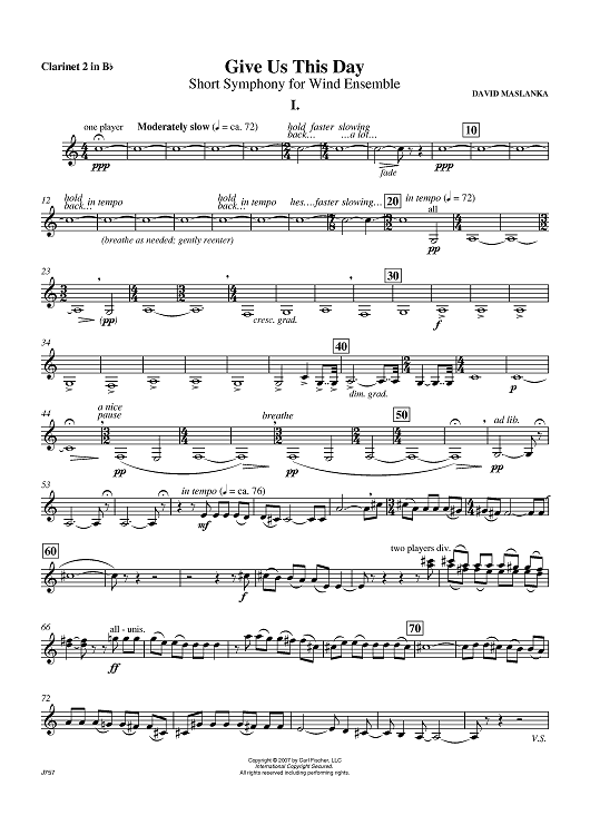 "Give Us This Day - Clarinet 2" Sheet Music by David Maslanka
