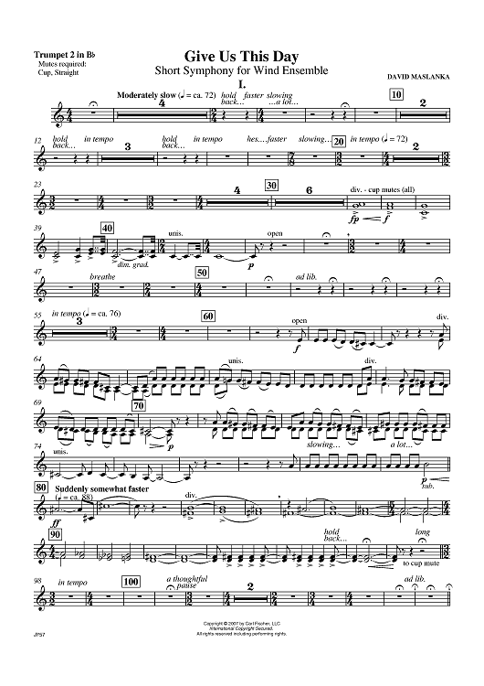"Give Us This Day - Trumpet 2" Sheet Music by David Maslanka