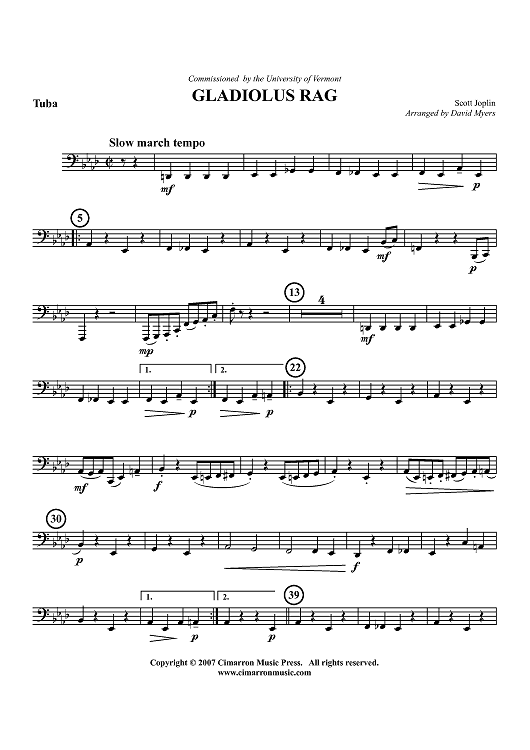 Digital Sheet Music for Gladiolus Rag - Tuba by Scott Joplin, David A. Myers scored for Brass Quintet; id:416568