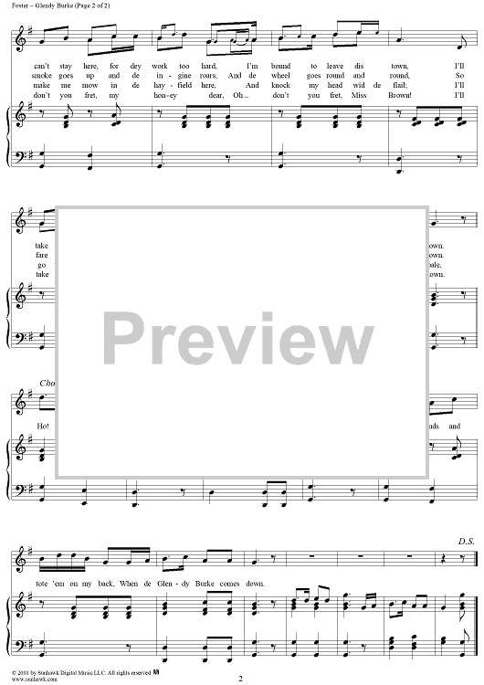 Digital Sheet Music for Glendy Burke by Stephen Foster scored for Piano/Vocal; id:269333