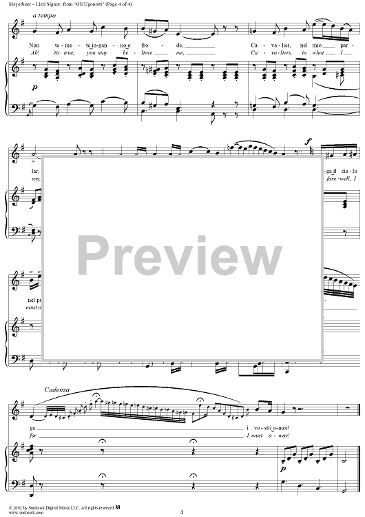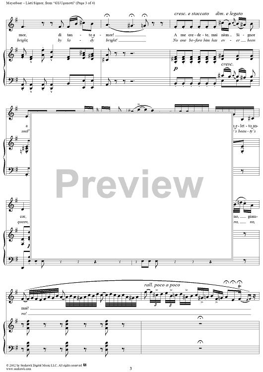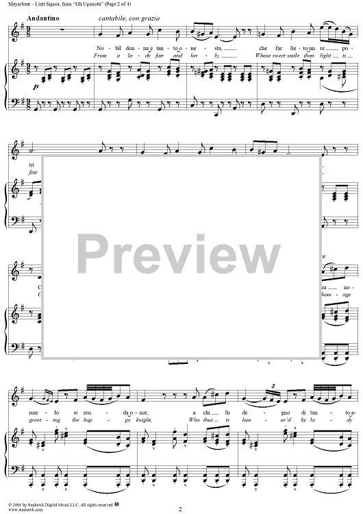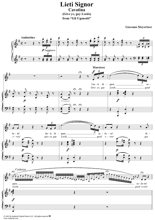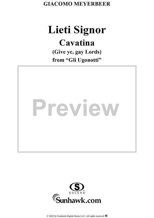 Digital Sheet Music for Gli Ugonotti, "Lieta Signore" (Give ye, gay Lords) by Giacomo Meyerbeer scored for Voice/Piano; id:253593