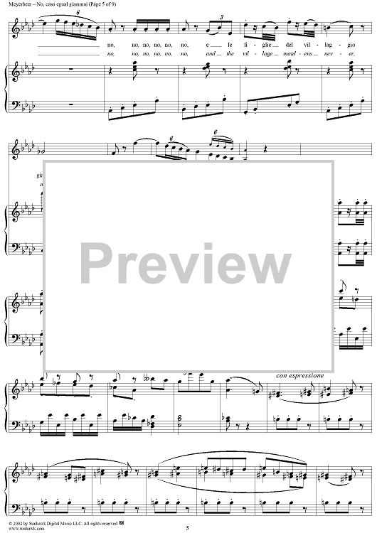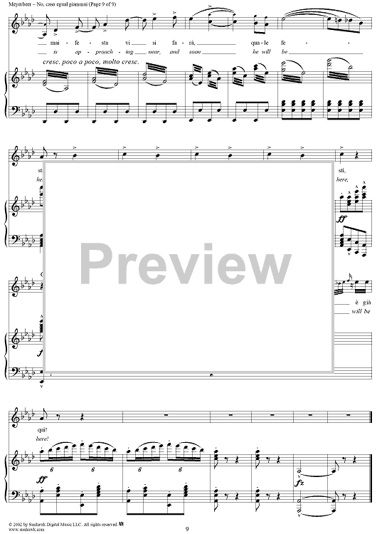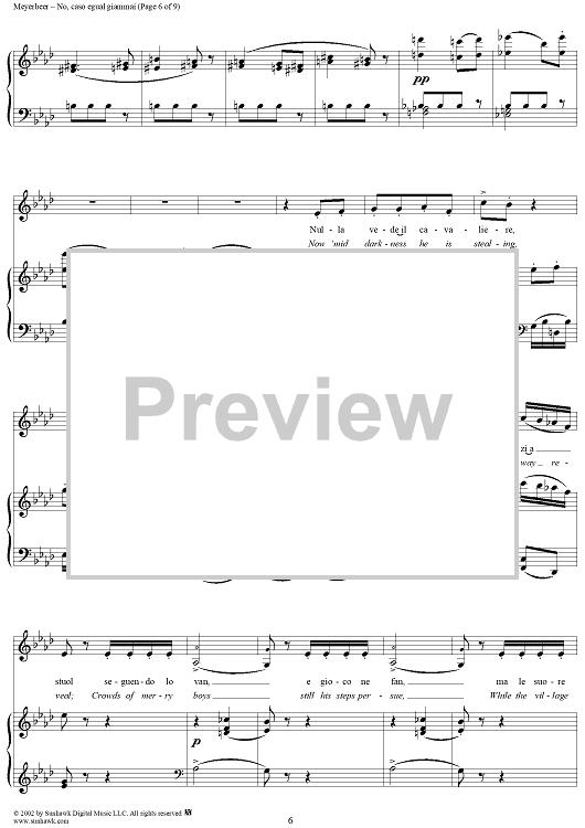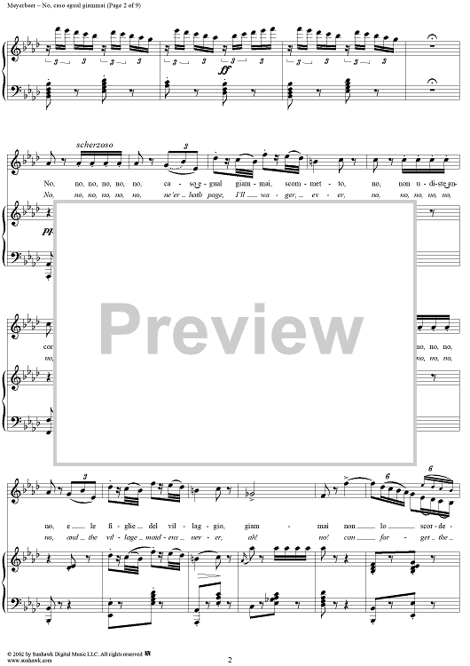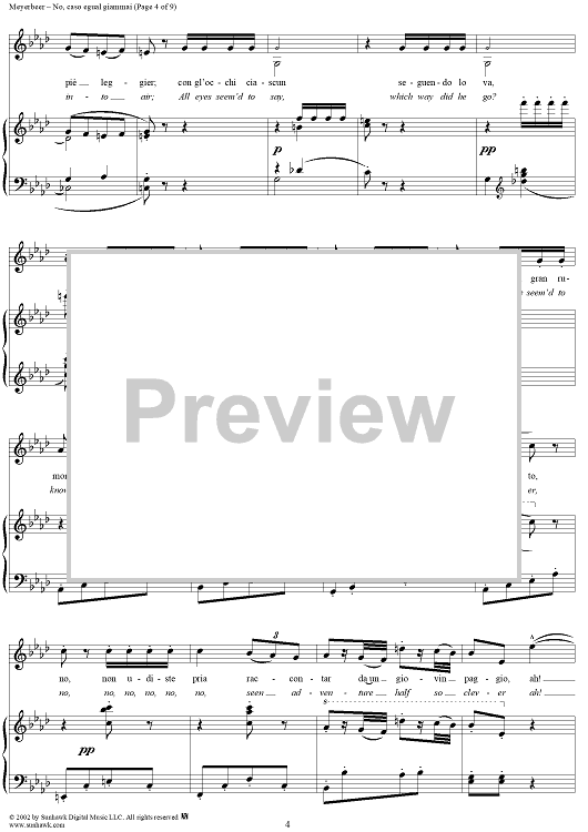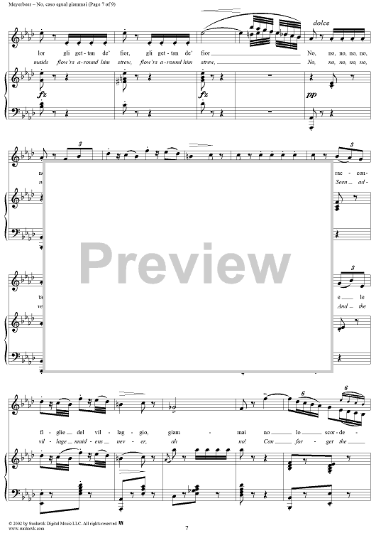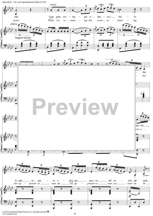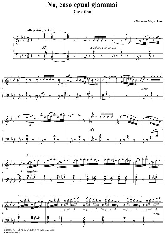 Digital Sheet Music for Gli Ugonotti, "No, caso egual giammai" (No, ne'er hath page) by Giacomo Meyerbeer scored for Voice/Piano; id:253583