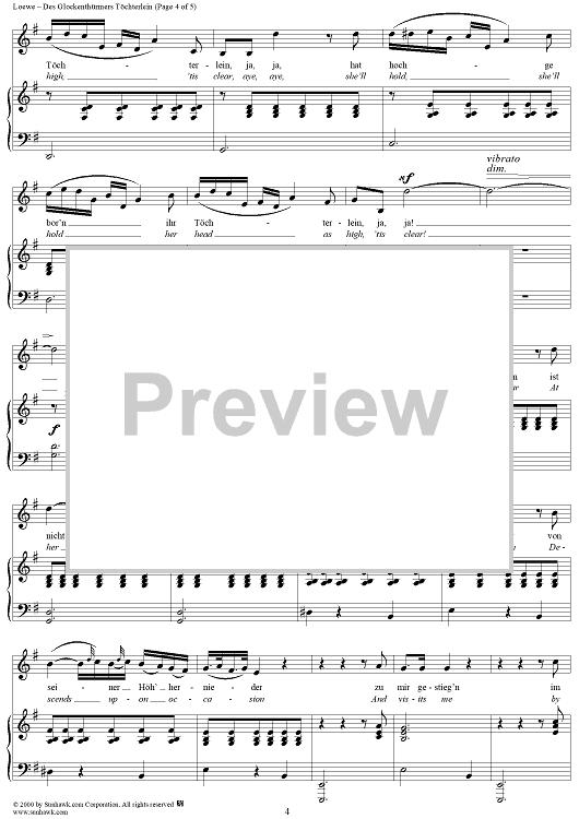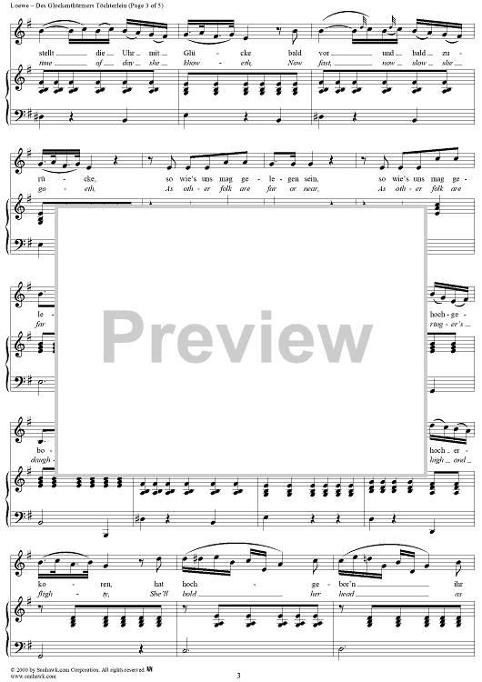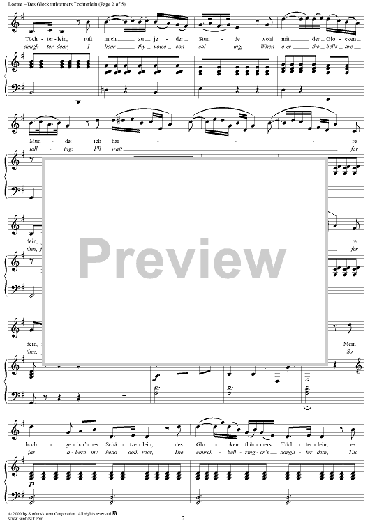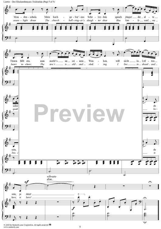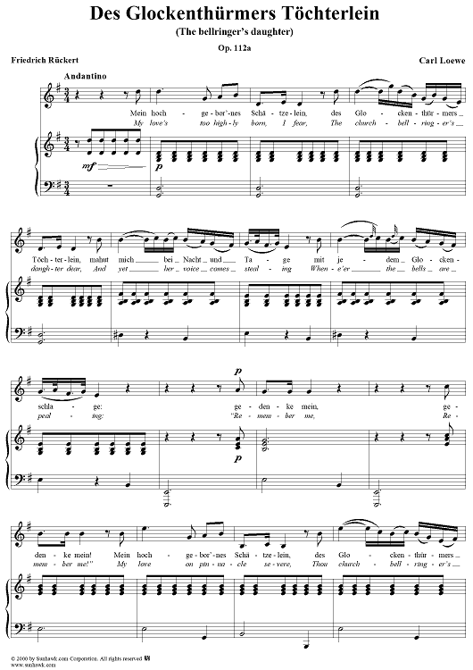 Digital Sheet Music for Glockenthürmers Töchterlein by Friedrich Rückert, Carl Loewe scored for Piano/Vocal; id:251087