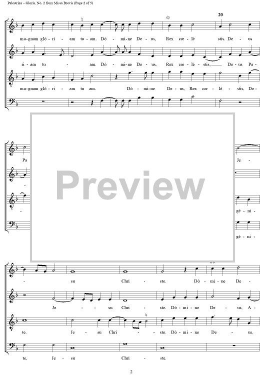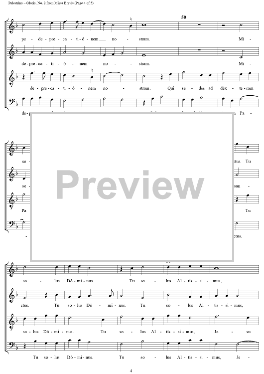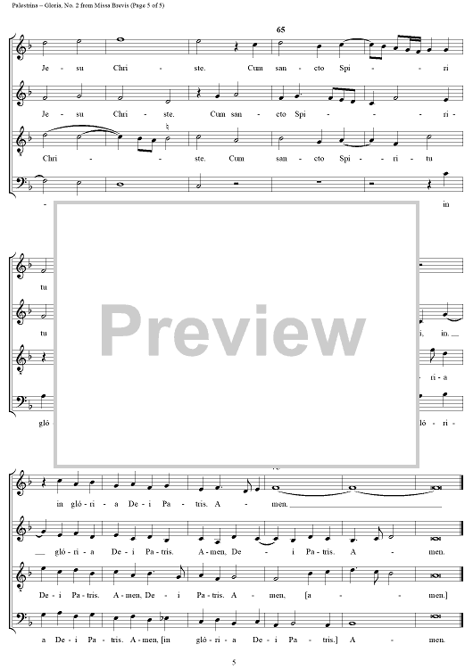 Digital Sheet Music for Gloria - No. 2 from Missa Brevis by Giovanni Pierluigi da Palestrina scored for Four-part Mixed Chorus; id:254302