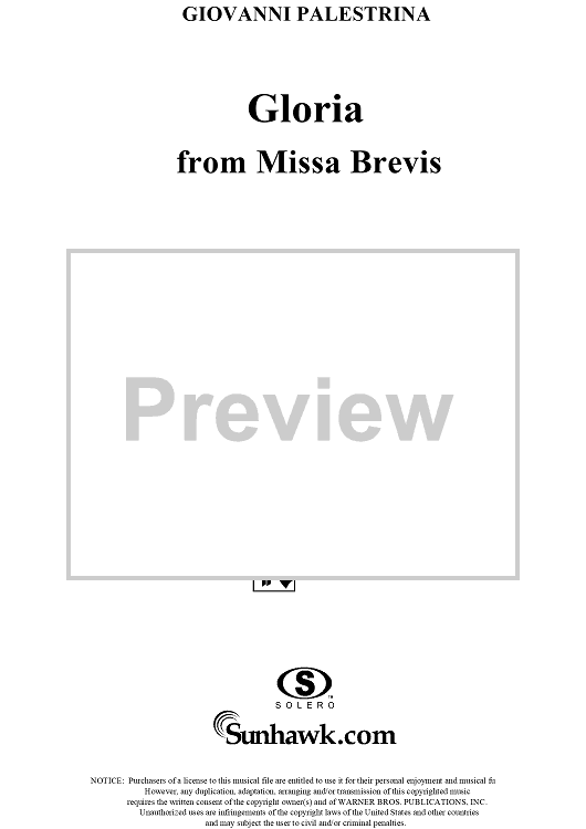 "Gloria - No. 2 from Missa Brevis" Sheet Music by Giovanni Pierluigi da Palestrina
