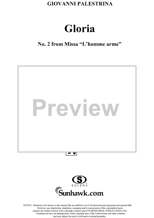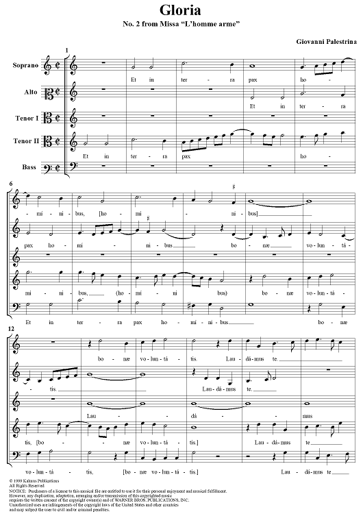 "Gloria - No. 2 from Missa "L'homme arme"" Sheet Music by Giovanni Pierluigi da Palestrina
