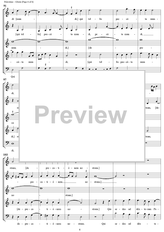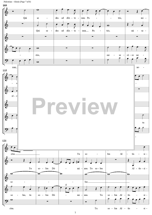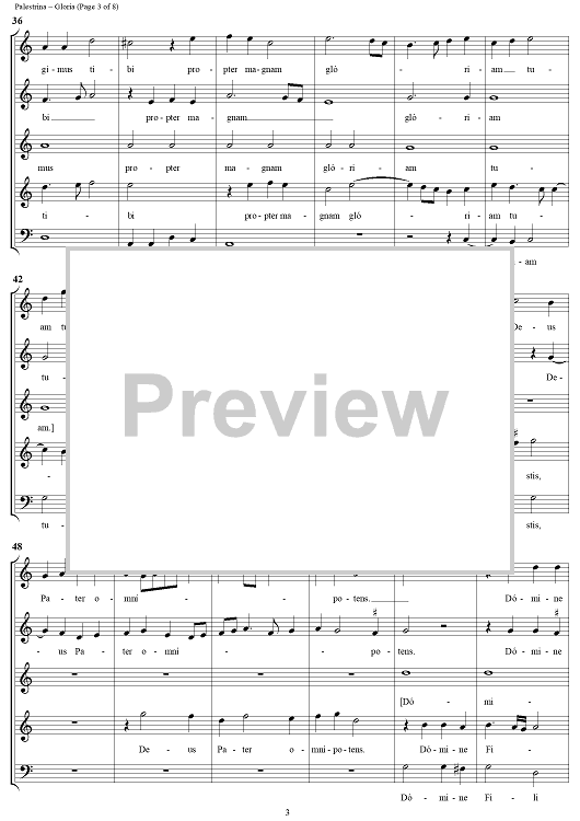 Digital Sheet Music for Gloria - No. 2 from Missa "L'homme arme" by Giovanni Pierluigi da Palestrina scored for Four-part Mixed Chorus; id:254142