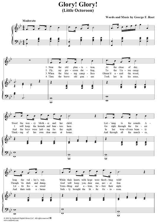 Digital Sheet Music for Glory! Glory! (Little Octoroon) by George F. Root scored for Piano/Vocal; id:268065